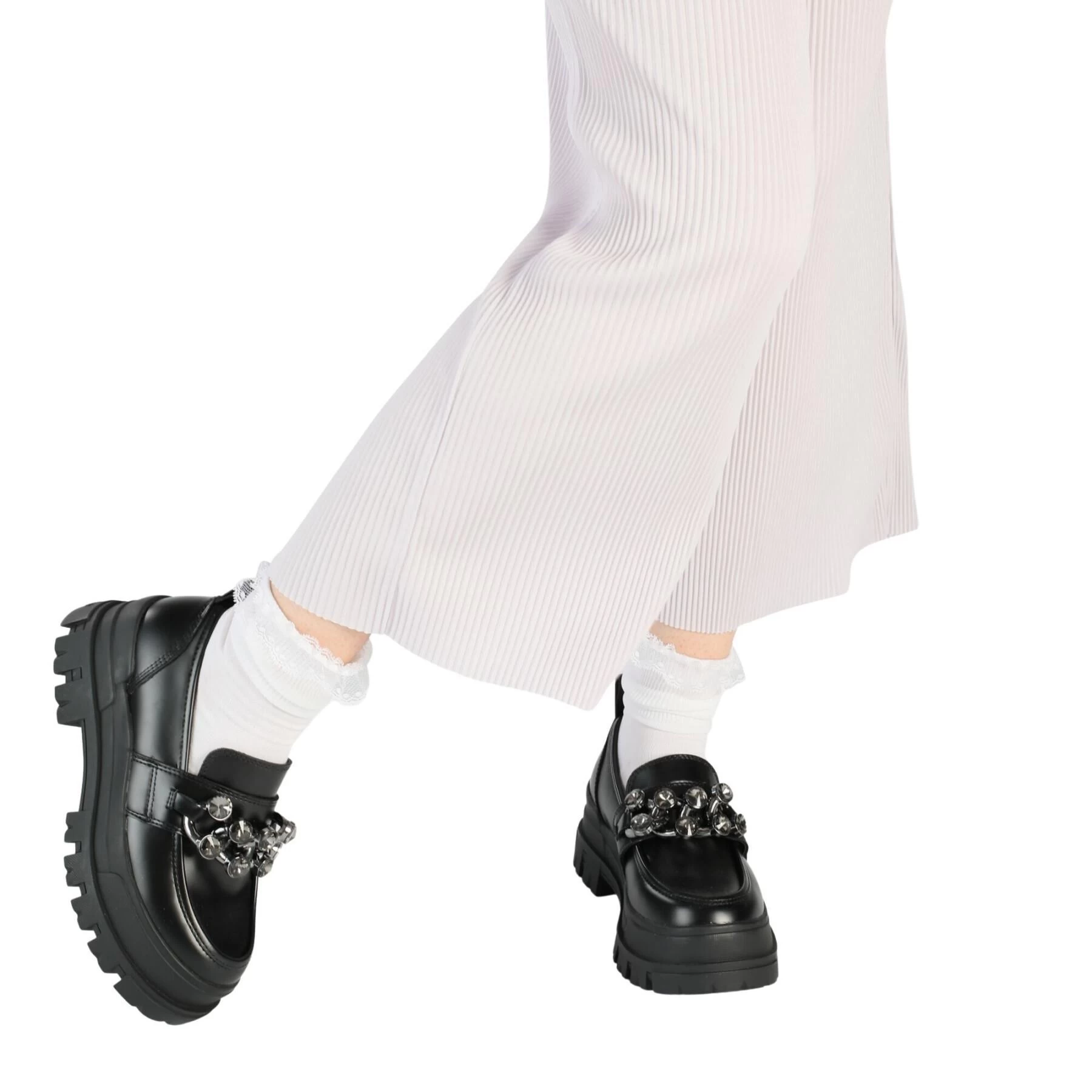 La chaussure basse Aspha Loafer Glam noire est un must absolu pour les fashionistas avec ses applications de pierres glamour. Le modèle se présente dans un noir classique et séduit par ses matières vegan. De plus, la Memory Foam et une première de propreté amovible offrent un confort particulier à tes pieds. Avec notre talon plateforme particulièrement haut et notre aspect monochrome, il est possible de créer un look élégant à partir de pratiquement toutes les tenues.